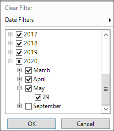 To select the choices to use as criteria, click to check the desired box or boxes and then, click OK. Note: Advanced filtering options are available by clicking Text Filters. |