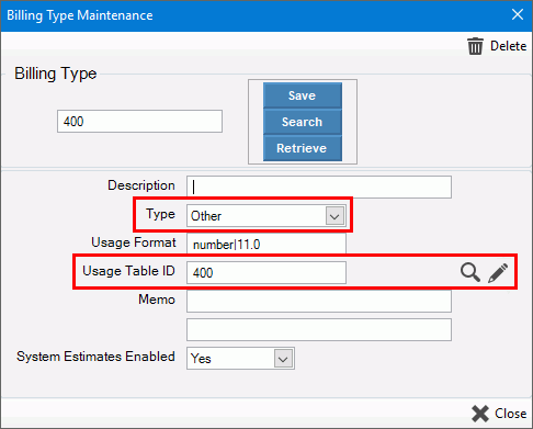 Bill Entry - Entering Special Bills - Usage Table Calculation Type