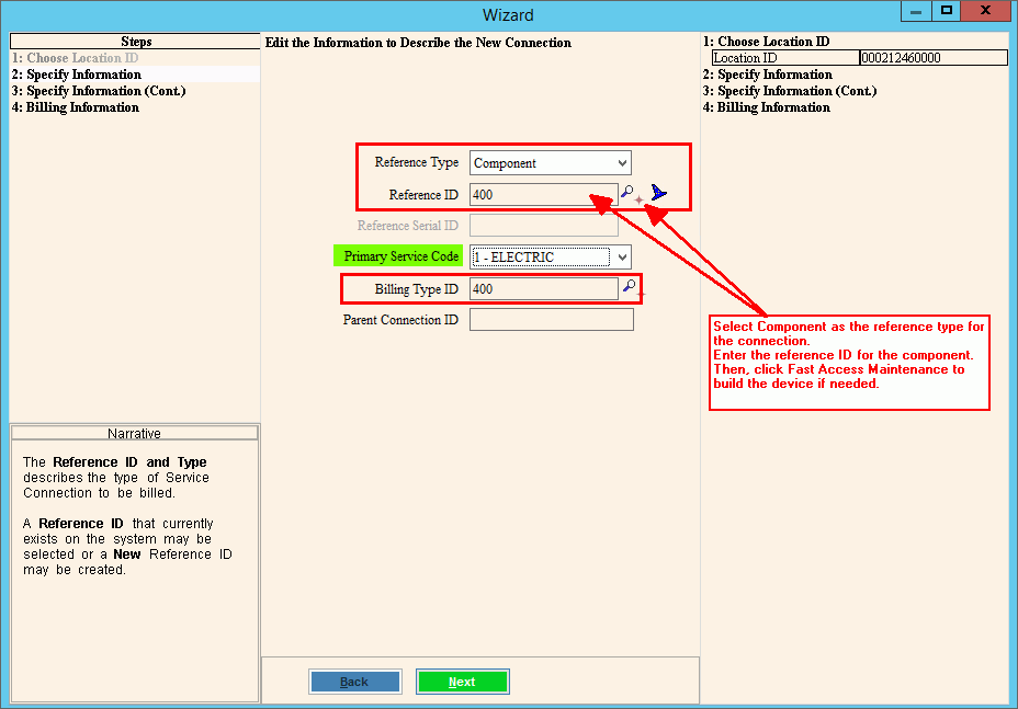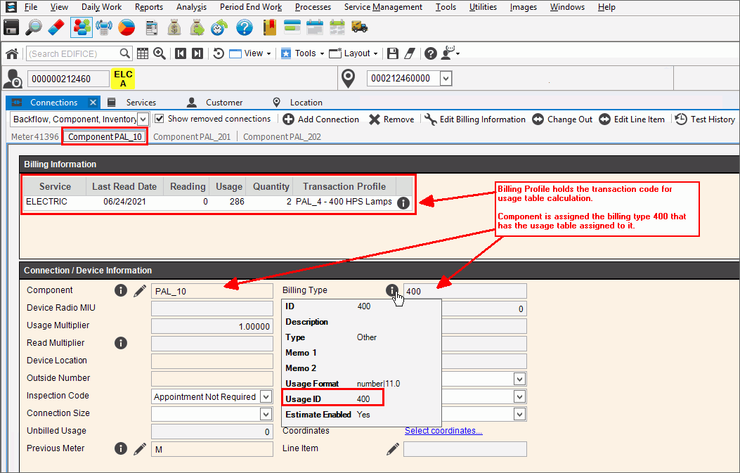 Create a connection with a component. Assign the billing type created above and assign the billing profile that has the transaction code for usage table.
