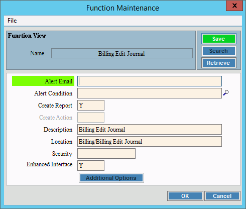 The Function Maintenance appears on the Reporting Toolbar as well as within the Report History.