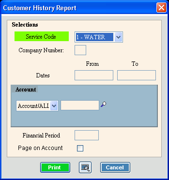 Use the Customer History Report to view customer history transaction details. You can specify the information you want to see on the report including the services, the companies, service dates, the finance periods. You can specify whether to report for a group of customers or an individual customer.