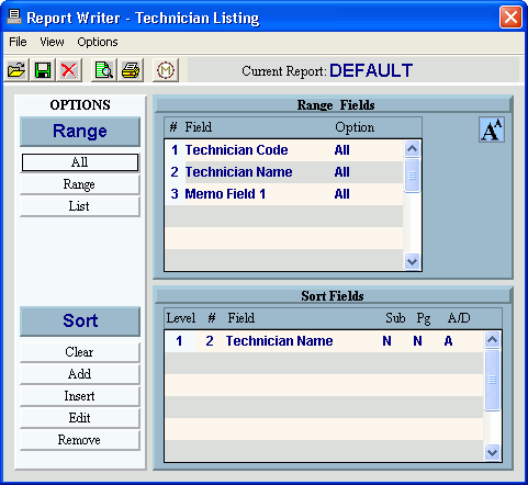 Use the Technician Code Listing to report the technician information that you maintain. The report includes the Technician Code, the technician names, the home phone numbers, beeper/cell phone numbers, trade class, trade level, specialities, territories worked, regular, overtime, and double time cost and billing rates. You can print this list by Technician Code to use as a quick reference lookup during Service Call Entry.