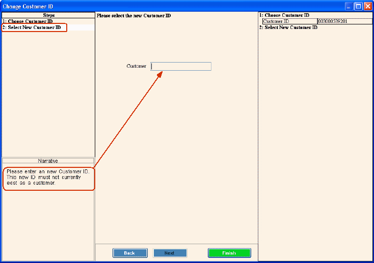 Change Customer ID Wizard - Select New Customer ID Step