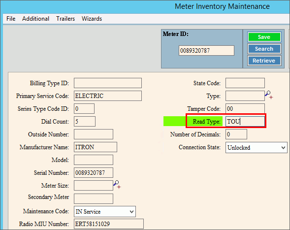 4. Repeat these steps for each TOU trailer and for the main meter if needed.