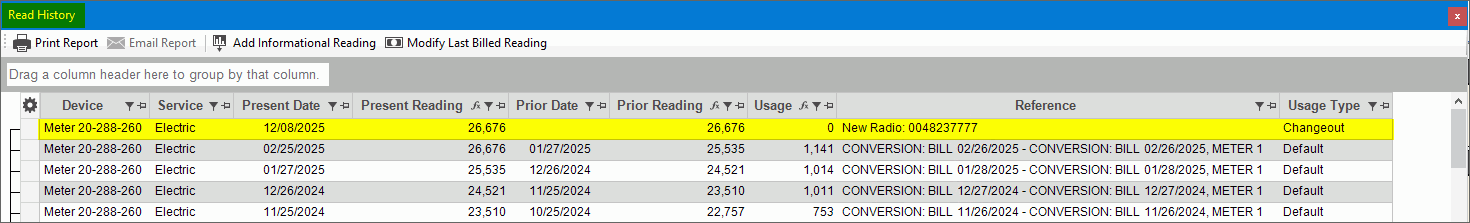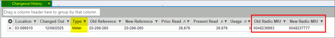 Tip: Radio MIU change outs can be seen in both the Read History and in the change out history.