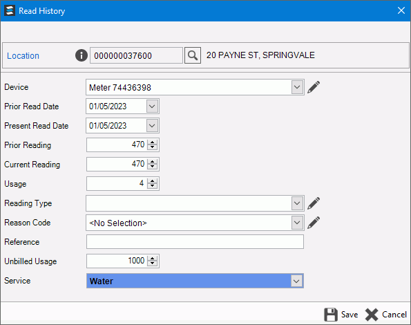 Displays the calculated unbilled usage using the Prior reading and the current reading. |