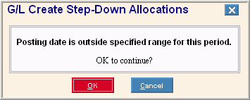 To accept the system date as the Posting Date, press [TAB]. Or, you can enter a different Posting Date. (mmddccyy - century and slashes optional) Tip: If the Posting Date is outside the Closing Date for the Period, you will see the following message: