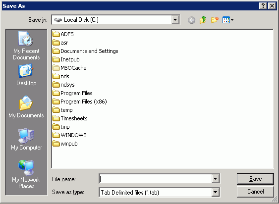 After clicking Export to Tab Delimited File or Export to Excel File, the Save As window displays: