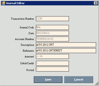 2. Double-click the journal entry to edit and the following window displays: