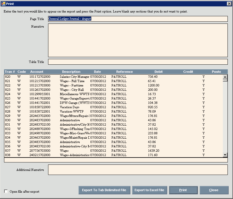 generated for the specific GL journal report. In