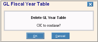 The Fiscal Year Table record must exist for the current year and any year with activity. If you delete a Fiscal Year record for a year with activity, you must recreate it. | |