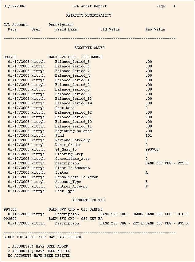 This report is also known as the G/L Audit Tracking Report.