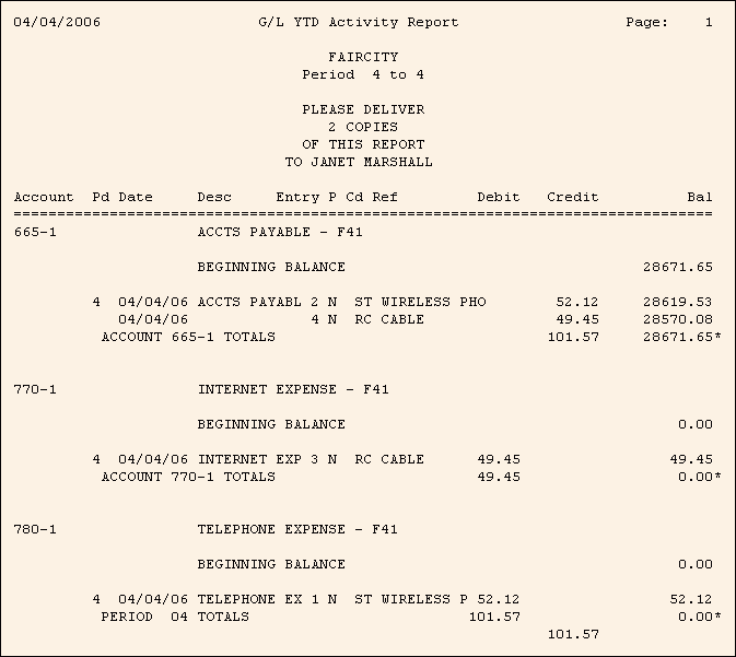 To see instructions for running the report shown below, see the YTD Activity Report Instructions.