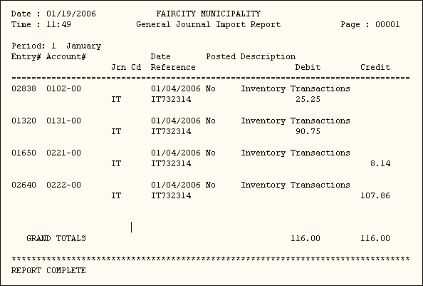 General Journal Import Report Sample