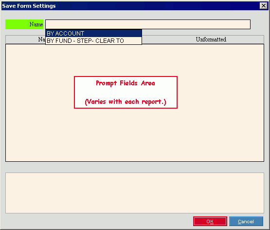 To update the new or changed report options and return to the report prompt, click OK or press [ENTER].