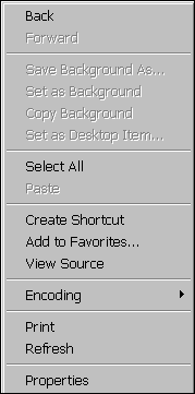 You will see the standard shortcut menu for the Internet browser, such as Windows® Explorer.
