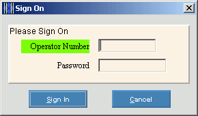 To verify the operator number and its respective password, click Sign In or press [ENTER]. Keyboard shortcut: [ALT + s] Tip: If you enter an incorrect operator number or password the following error message displays on the Status Bar: