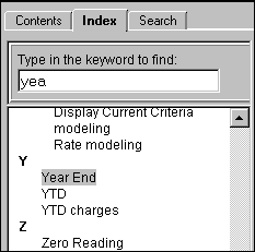 Use the scroll bar to move up or down in the keyword list. Click a keyword and the associated topic displays in the Viewing Pane.