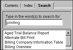 Use the WebHelp® Search tab to locate Help topics that contain the phrases or individual words you want to find.  The search routine scans text in all topics to find matches.  When the search is complete, a list of topics displays so you can select a specific topic to view.