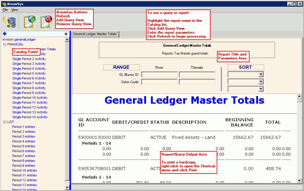 Use iKnowSys™ an NDS reporting tool to quickly and efficiently generate queries or reports on your General Ledger information.  With iKnowSys you can run multiple queries at the same time and compare the results.  In addition, you have the option of printing a hard-copy of your query or report results.