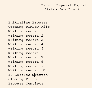 To see a sample of the Direct Deposit Export Status Box Listing, click More.