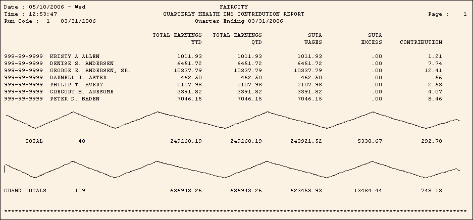 To see instructions for running the report shown below, see the Quarterly Health Ins Report Instructions.