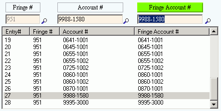 Auto Fringe Distribution Maintenance: The Payroll Post uses this cross-reference to link Appropriation Account Numbers (expense accounts) to Department Numbers. To see instructions, click More.