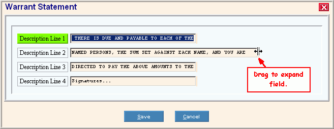 Use Check Register - Warrant Statement Maintenance to maintain the lines of text that print on the Check Register - Treasurer's Warrant Report and the PR A/P Check Register. The report prints a sign-off page for the treasurer. For example, municipalities frequently require that the Check Register be approved, which is indicated by the signed warrant page.
