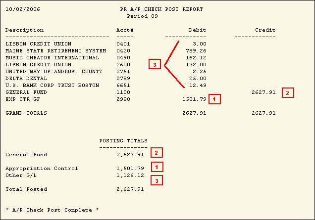 To see instructions for running the report shown below, see the PR A/P Check Post Instructions.
