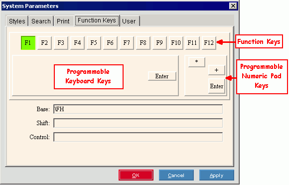 Do not confuse Function Keys with Keyboard Shortcuts. Keyboard shortcuts, such as [ALT] [f], are predefined in the software, whereas with Function Keys, you can change the commands launched. For example, you can not change the Keyboard Shortcut for a menu option, however you can change the command launched by [F3].