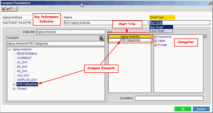 You can further refine the compare values by specifying which Categories within each Compare Element you want to include in the chart. Example: For the ATB Categories Compare Element: