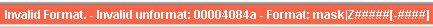 • Error messages display the numeric format as |X.Y|, where X = the number of digits to the left of the decimal point and Y = the number of digits to the right of the decimal.  For example, |7.2| indicates you can enter up to seven digits to the left of the decimal, and two digits to the right.