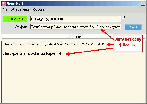 Email Report Window Example: