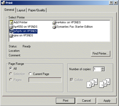 Example:  The Printer Setup window may vary slightly depending on your version of Windows.