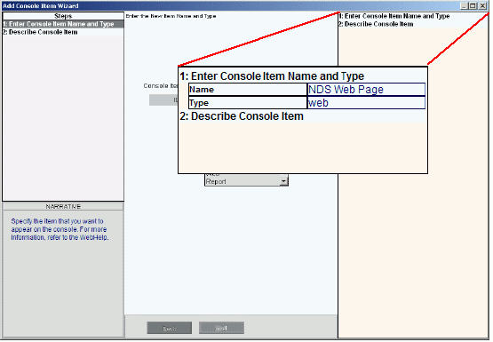 1. Open a Wizard window, such as the Add Console Item Wizard.