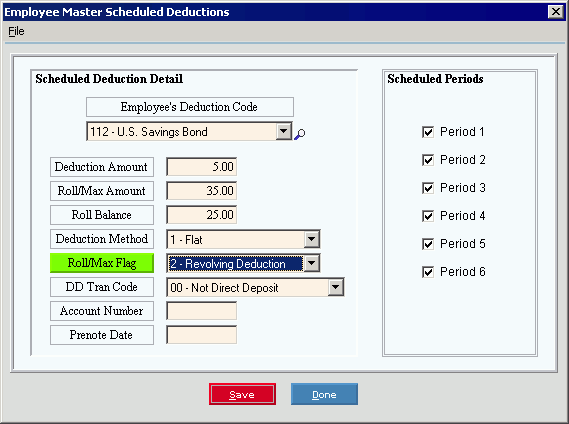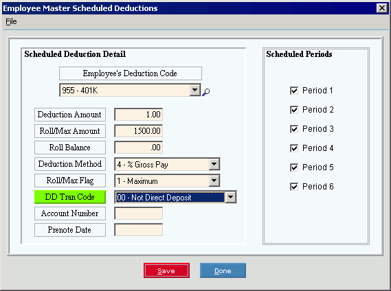 Employee Master Maintenance - Employee Master Scheduled Deductions Area