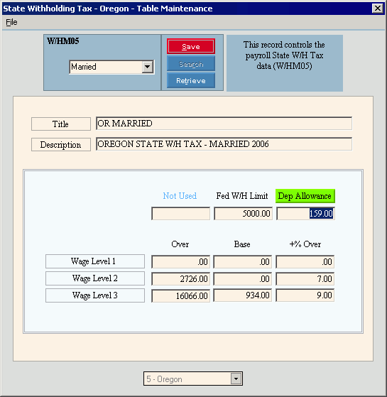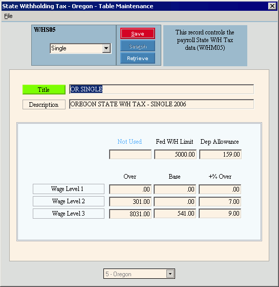 State Withholding Tax Table Maintenance - Oregon (W/Hx05)