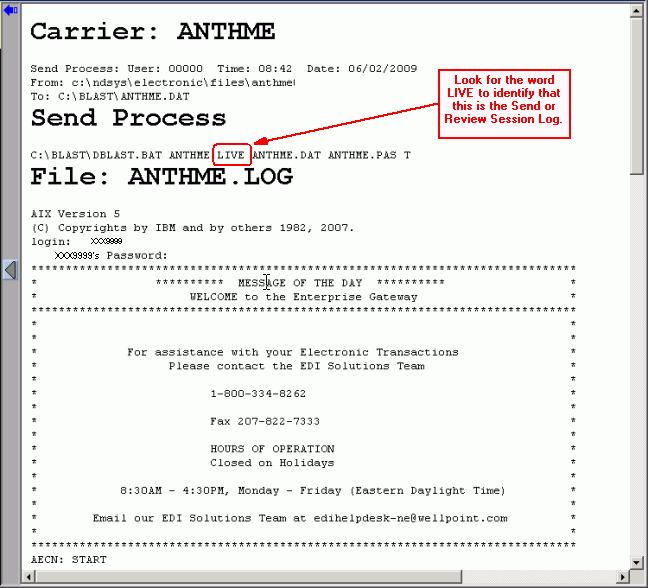 Verify that you see LIVE so that you know you are looking at a Review Log and not a Receive Log.