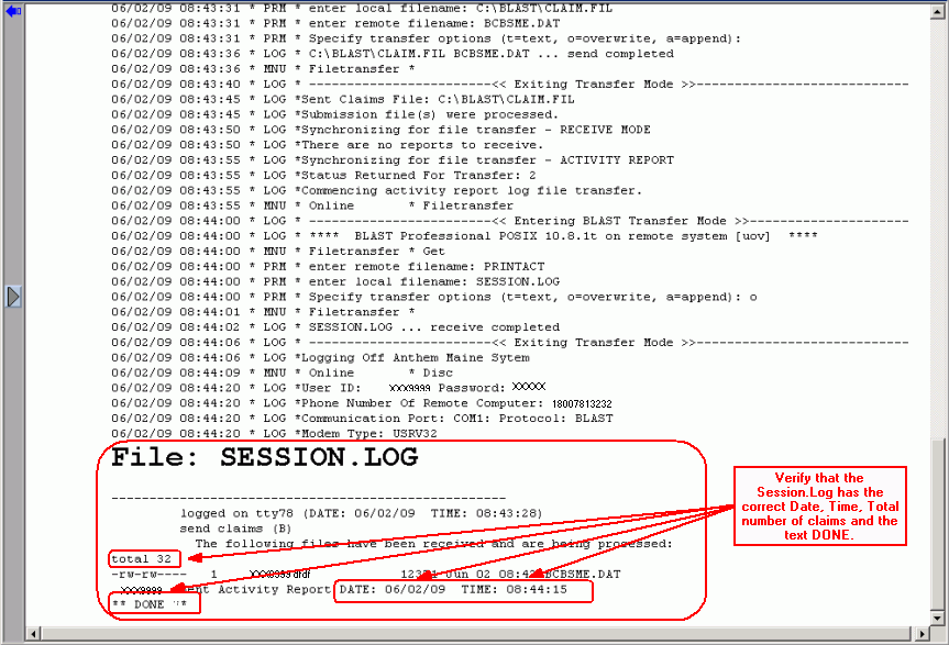 The Electronic Billing Review Log reports information that verifies that the electronic billing file was transmitted to the carrier and provides the details of what happened during the electronic billing Send routine.