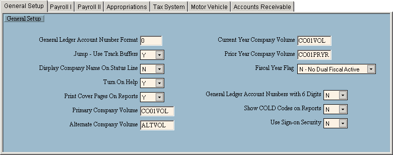 Use the Company Control Options to set up the environment for the Invision Application. Typically, these settings are maintained when your software is installed.