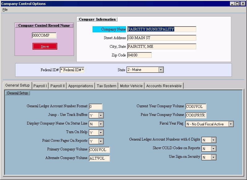 To save changes to the Company Control Record, click Save or press [ENTER]. |