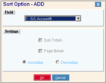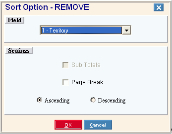 To remove the sort options for the field, click OK or press [ENTER]. Keyboard shortcut: [ALT + o] |