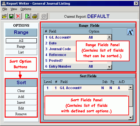 Tip: The list of Range Fields and Sort Fields varies for each report.