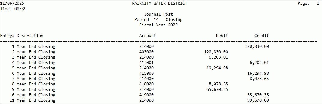 To see instructions for running the report shown below, see Clear and Close Accounts.