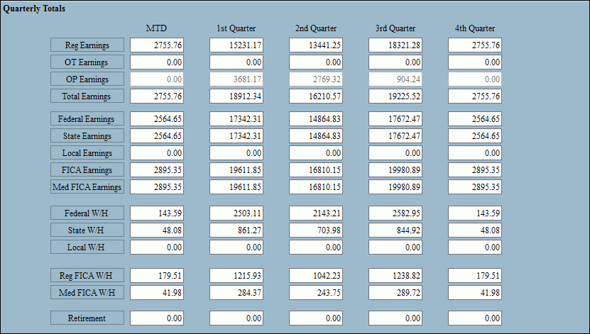 Employee Quarterly Totals Maintenance - Employee Quarterly Totals Area Example: