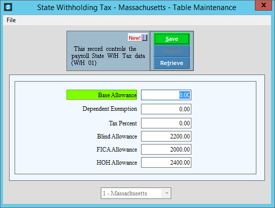 State Withholding Tax Table Maintenance - Massachusetts (W/H 01)