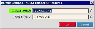To update the default report options, click OK or press [ENTER]. Keyboard shortcut: [ALT + k] |