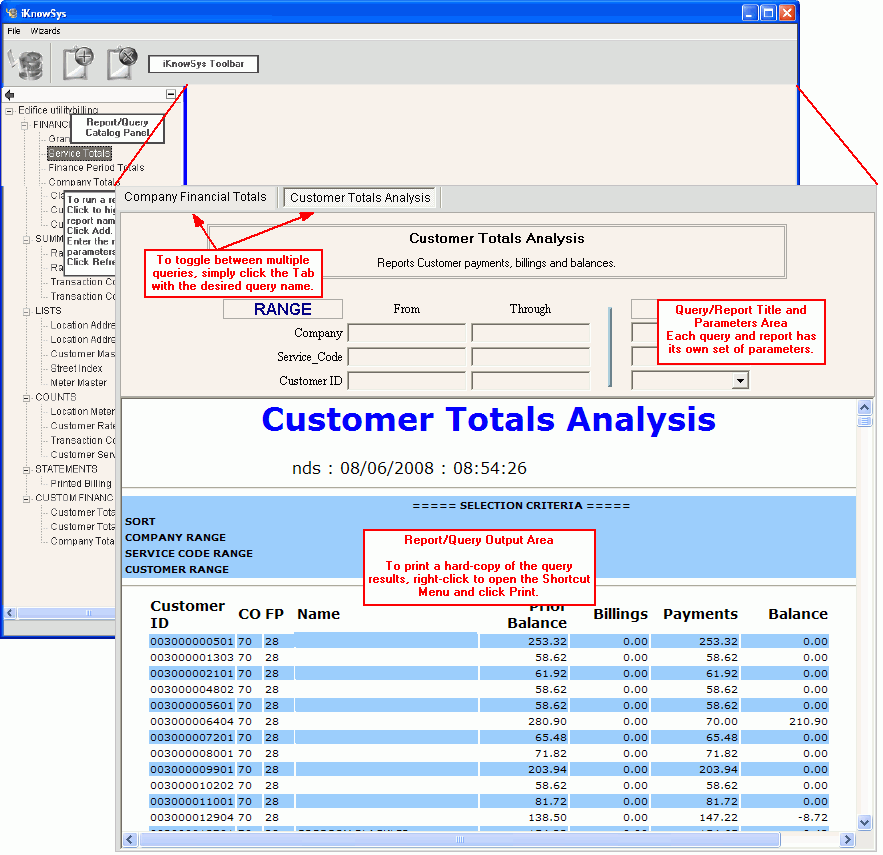 iKnowSys - Report/Query Panel Window Example: