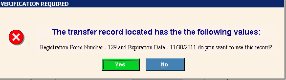 the transfer VIN is already in the system, the transfer excise