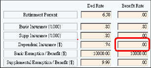 Field Description - Ret-ME Dependent Ins Amt Per Pd for Fringe